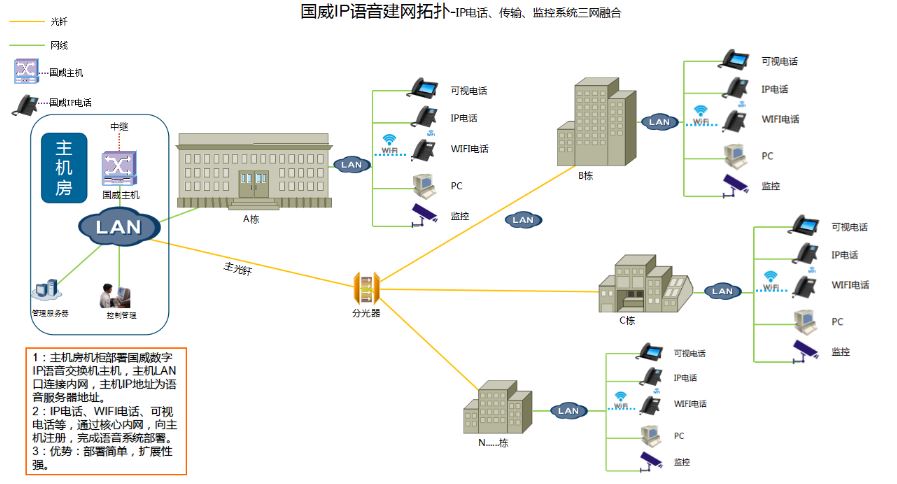 國威三網(wǎng)合一語音部署方案